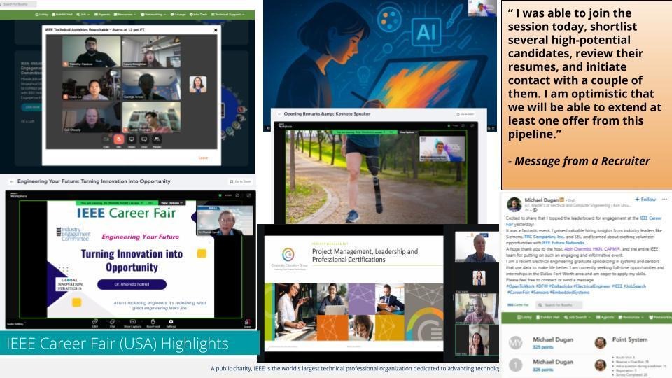 The success of the IEEE Career Fair (USA) now sets the stage for a global series of IEEE Virtual Career Fairs across Canada; Latin America; Europe, Middle East, and Africa; and Asia-Pacific — scaling a model that connects talent, technology, and opportunity worldwide.